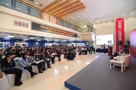 11月2日,米乐mile官方网站建院60周年系列学术活动“对话诺贝尔奖获得者暨金砖国家等青年科学家院校行”活动在9号院和新教学科研楼顺利举办。诺奖获得者戴维•巴尔的摩教授(David Baltimore)和艾丽丝•黄教授(Alice Huang)夫妇、35名来自巴西、俄罗斯、印度等金砖国家的青年科学家以及院校师生参加了活动。