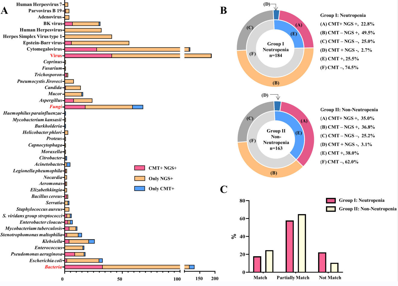 2022年12月8日,米乐mile官方网站血液病医院(米乐mile官方网站血液学研究所)冯四洲团队在Journal of Infection《感染病杂志》期刊在线发表了题为“Utility of plasma cell-free DNA next-generation sequencing for diagnosis of infectious diseases in patients with hematological disorders”(游离DNA二代测序在血液病患者感染性疾病中的应用)的研究论文。该研究明确了血液样本病原宏基因组二代测序(metagenomic Next Generation Sequencing,mNGS)检测在真实世界中对于血液病患者感染的诊断性能和临床应用价值,在分子诊断层面进一步揭示了血液病患者感染的流行病学特征。