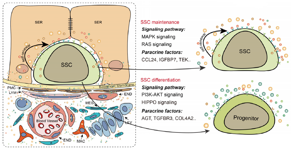 图1. 精原干细胞/生态位构筑及互作调控机理