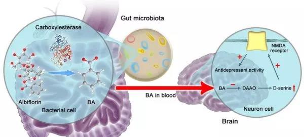 论文名称:"Gut-brain axis metabolic pathway regulates antidepressant efficacy of albiflorin"