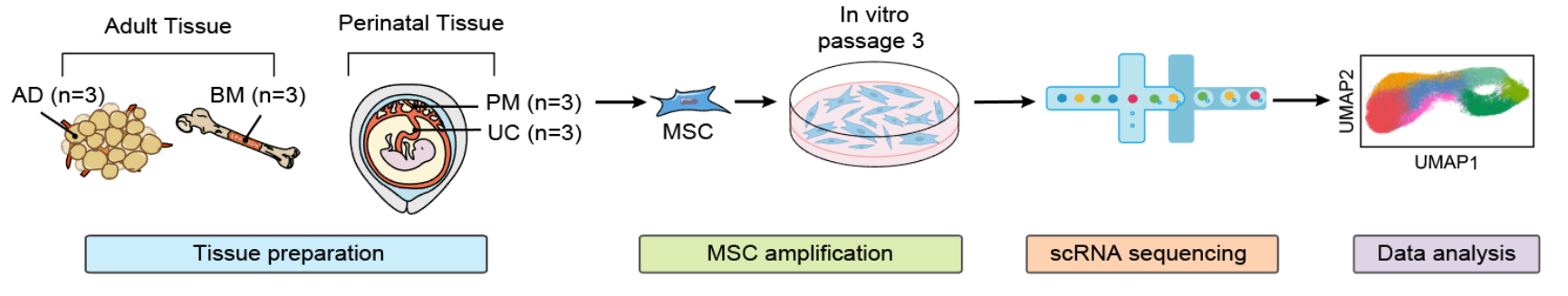 该研究首先对成年人及围产期组织来源的MSCs进行了单细胞转录组分析,发现体外扩增的MSCs内部存在细胞衰老程度不同的细胞亚群,DNA损伤与错误折叠蛋白质的累积是造成其衰老的两个主要机制。与年轻供者来源的MSCs相比,高年龄供者来源的MSCs衰老程度更高,表现为细胞增殖与免疫抑制能力下降。进一步分析证实,PD-L1的表达下调是导致衰老MSCs免疫抑制能力下降的重要分子机制。
