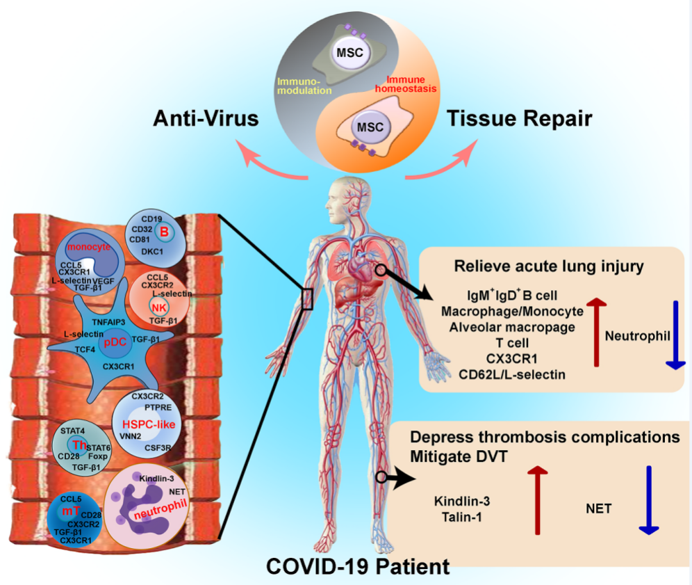 间充质干细胞通过调节免疫应答、促进组织修复、抑制NET释放改善COVID-19患者预后