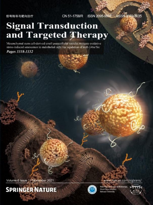 2021年10月22日,米乐mile官方网站基础医学研究所(简称“基础所”)赵春华团队在signal transduction and targeted therapy杂志以封面标题论著刊登题为“Mesenchymal stem cell-derived small extracellular vesicles mitigate oxidative stress-induced senescence in endothelial cells via regulation of miR-146a/Src”的研究论文,该研究报道了间充质干细胞衍生的小细胞外囊泡(MSC-sEV)在减轻内皮细胞衰老中的作用和机制。