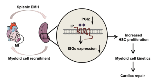 五、血液病医院揭示了PGI2-IFN轴通过影响脾脏髓外造血调控心肌梗死后心脏修复的具体作用和分子机制,为临床治疗缺血性心脏损伤提供新的思路和靶点(研究论文)