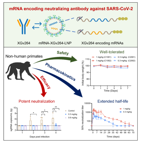 英文标题:Efficacy and safety of an mRNA encoding neutralizing antibody against SARS-CoV-2 in non-human primates
