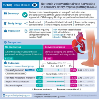 研究为全球迄今规模最大的No-touch取材RCT研究,其3年随访结果为该技术在CABG中的广泛推广提供了坚实依据。研究成果发表于国际权威医学期刊《The BMJ》,为未来冠脉搭桥术中桥血管选择和手术技术改进提供了关键证据。