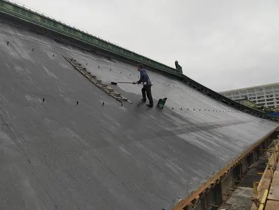 壹号礼堂和9号院的屋顶表面,原本仅采用屋面瓦件自防水,即依赖瓦件自身的密实性和抗渗性,以及瓦件间合理的搭接和密封处理进行防水。在经历了一个世纪的风吹雨打后,瓦件的抗雨水能力下降,木构件腐朽、倾折。此次修缮,在整体采用防水处理后,针对薄弱部位,即木构件与檐头连接处,增加了两层防水材料。