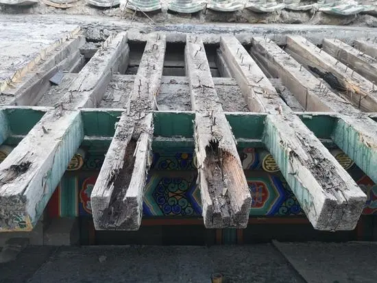 修缮团队施工单位现场负责人史玉龙告诉中青报·中青网记者,修缮的第一步是排险,即消除安全风险,比如瓦件断裂掉落伤人的风险;第二是维护建筑的功能,修复团队与时间赛跑,控制了建筑屋面的防水、防火功能丧失的趋势和速度;第三,从文物保护角度,延长文物本体寿命,通过修缮更好地保护文物。