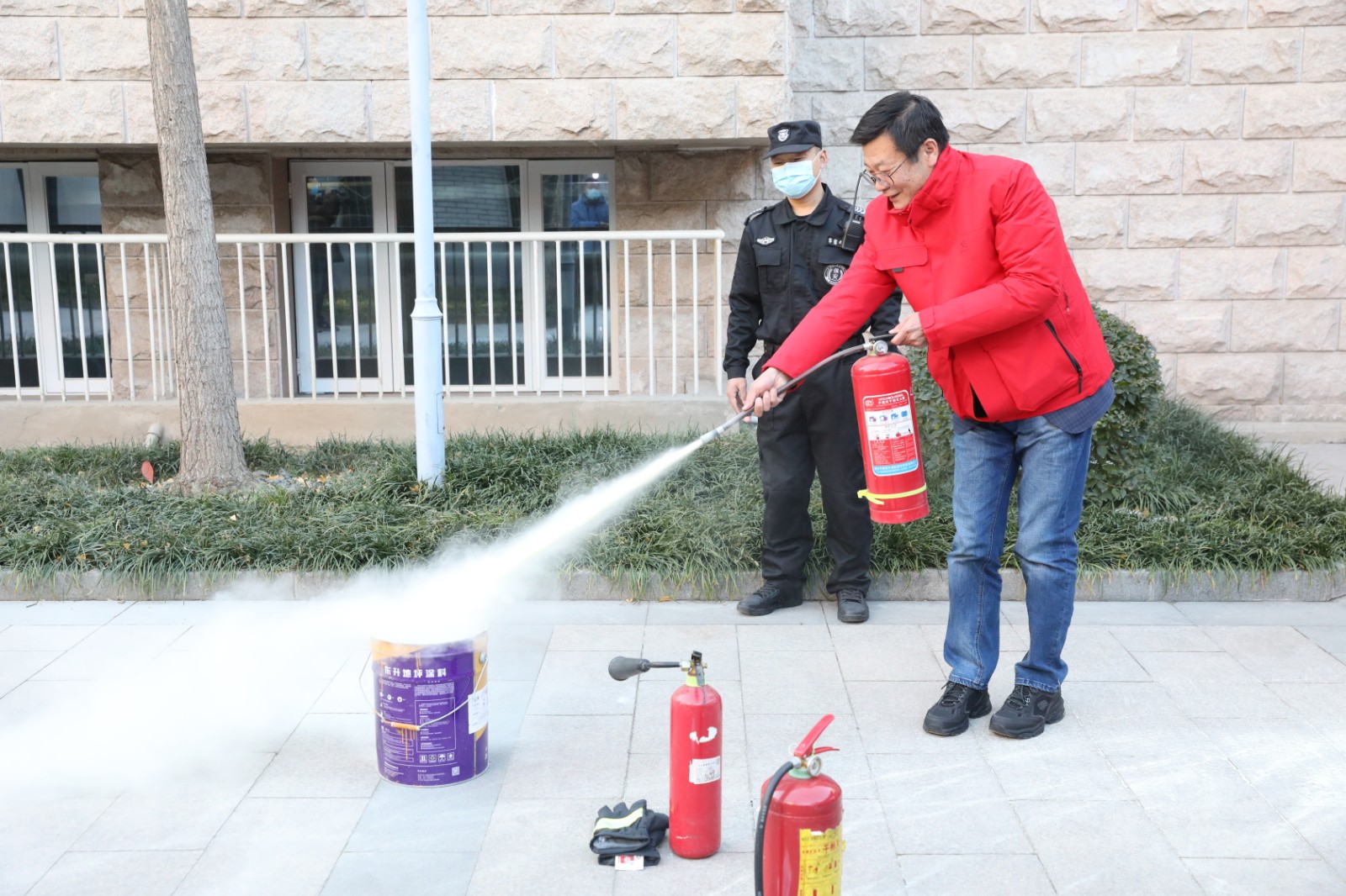 整个过程仅用了1分钟,做到了安全、快速、有序。楼层负责人确认本楼层没有遗留人员后,立即到达指定集结位置,清点人数并汇报。随后,各楼层安全原对本组人员进行了灭火器实操使用等自救知识培训。在认真听讲及观摩后,教师亲自体验了现场灭火的过程。面对熊熊燃烧的火堆,教师们熟练地按照灭火的步骤和方法,将燃起的浓烟大火成功地迅速扑灭,做到了冷静沉着的面对突发现象,成功快速地扑灭大火的消防标准。