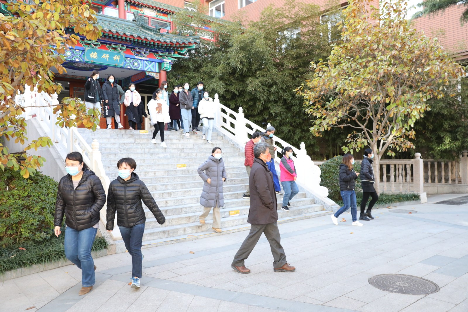 下午3点30分,科研楼和行政楼中火灾警报声突然响起,各楼层负责人紧急集合并组织大家疏散。全所人员在安全员的指导下,按照应急预案,纷纷沿着指定楼梯通道快速、有序地撤离到院内安全地带。