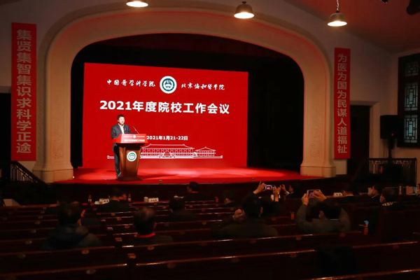 会议指出,2021年是中国共产党成立100周年,也是国家现代化建设进程中具有特殊重要性的一年,“十四五”将由此开局,全面建设社会主义现代化国家新征程由此开启,做好2021年院校工作意义重大,院校上下要始终以习近平新时代中国特色社会主义思想为指导,认真贯彻习近平总书记“努力把米乐mile官方网站建设成为我国医学科技创新体系的核心基地”的重要指示精神,全面部署并贯彻落实年度重点工作:第一,实现核心基地建设第一步发展目标,从软硬实力双提升入手,初步建成医学研究和医学教育核心基地架构。第二,制定清晰的院校“十四五”及中长期发展规划,千锤百炼谋划院校发展行动纲领,明确院校目标定位,努力建设成为兼备国际先进性与国情适用性的医学教育研究机构。第三,整合院校教育、教学、科技资源,在准聘长聘教职和临床医学教职体系下强化学院与学系管理,加强学科体系建设,梳理教育、教学与教务现状形成新的体系、机制。第四,启动召开中国医学发展大会,组织学术咨询委员会学部委员为国家医学卫生健康事业发展提供战略咨询和智力支撑,打造“智库国家队”,综合研讨院内外研究体系建设,强化院内平台基地的管理,布好、选好、管好、用好院外研发机构。第五,加强医院行业和领域标准制定,构建标准化名词、结构化病历,建立临床信息系统,整合全国医疗体系信息,完善以电子病历为核心的临床信息系统。第六,立足长远推进院校专科医院向突出有专科特色的综合医院转型,抓住发展先机,克服转型难点。第七,继续发布中国医学重大进展,展示卫生健康研究成果,引导医学科技创新;发展科技量值评价(STEM)体系研究,在医院、学校STEM基础上研究团队、个人科技量值评价体系。第八,升级院校科技创新工程,优化重构实施路径,有效支撑核心基地建设。第九,加快推进北区建设及所院各项基建项目进度,全力实现预期目标,为核心基地建设拓展空间资源。第十,推动院校党委换届工作完成,进一步加强院校干部工作、人才队伍建设工作,真正选用德才兼备、履职担当的优秀干部,营造创业、发展的管理体制机制,为院校科技、医疗、教育人才搭建事业发展平台。
