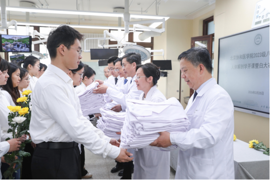 2026年3月25日上午8时,米乐mile官方网站2023级临床医学八年制人体解剖学开课暨白大衣授予仪式在九号院解剖楼实验室庄重举行。院校党委书记邓海华、院校长吉训明、党委副书记张勤、学生处处长崔庚申、基础学院副院长王欢(班主任)、临床学院神经外科主任赵元立、人体解剖与组胚学系教师及2023级临床医学八年制全体同学参加仪式。