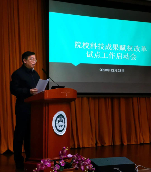 12月23日下午,院校 “赋予科研人员职务科技成果所有权或长期使用权试点工作”启动会在新教学科研楼八楼报告厅召开。
