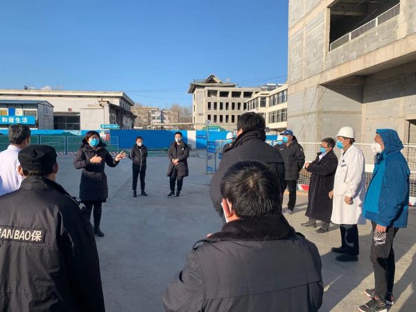 医院注重做好疫情防控部署准备工作,1月30日制定并印发了《新型冠状病毒感染的肺炎防控工作方案》,成立了领导小组和工作小组。同时改扩建工程(Ⅰ期)的施工单位中国建筑一局(集团)有限公司也于1月31日及时编制了《新型冠状病毒感染的肺炎防控应急处置方案》,并根据北京市住建委相关文件的要求于3月初修订了《新型冠状病毒感染的肺炎防控方案》《新型冠状病毒感染的肺炎现场应急预案》。在确保疫情防控到位的前提下,医院要求施工单位立足人员情况动态管控,如每天坚持上报在岗人员和健康观察人员的体温测量及现场消毒工作,努力确保工地实现“零感染”目标。