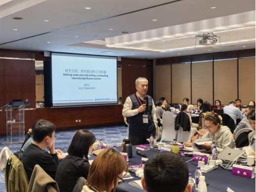 院校科技管理处副处长杨涛莲和北京大学临床医学高等研究院副院长、临床研究所常务副所长武阳丰教授为培训班开班致辞。他们表示,院校通过设立专项资助机制和深化制度创新,有效夯实了临床研究提质增效的基础条件,为构建“医研协同”的创新生态系统提供了有力支撑,以实际行动践行“四个面向”的国家战略要求。在去年试点开设临床医师科研能力提升培训课程基础上,积极响应深化科技体制改革要求和国家卫生健康科技创新相关会议精神,新增了AI与临床研究等课程,助力AI赋能医学。他们对全体学员提出三点殷切期望:一是要提高站位,希望各位学员立足国家战略需求和人民生命健康,从临床实践需求出发,凝练出拟解决的关键科学问题;二是运用科学方法解决问题,期待学员们以本次培训为契机,系统掌握前沿研究方法,将理论成果有效转化为解决实际问题的研究能力;三是积极开展学科交叉,本次培训班鼓励学员携同非临床领域人员参加培训,同时,今年专项申报中设立了co-PI制度,为跨学科团队合作提供机制保障。