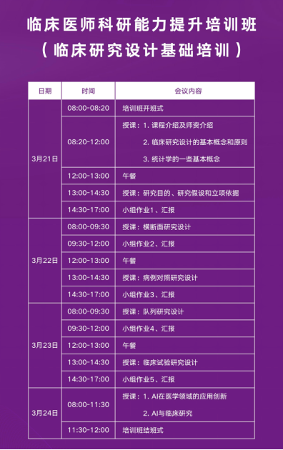 本次培训通过专家授课、小组讨论、案例分析、面对面辅导、小组汇报及作业点评等多种教学形式,将理论与实践深度结合,帮助各位学员掌握临床研究设计的基本概念、原理,了解临床研究常用设计类型、特点和用途,为研究团队提供高质量学习交流平台。院校将持续助力医学研究的进步和医疗服务质量的整体提升,培养具备前瞻性和创新精神的医学人才,推进“健康中国2030”战略实施,为保障人民健康福祉作出积极贡献。