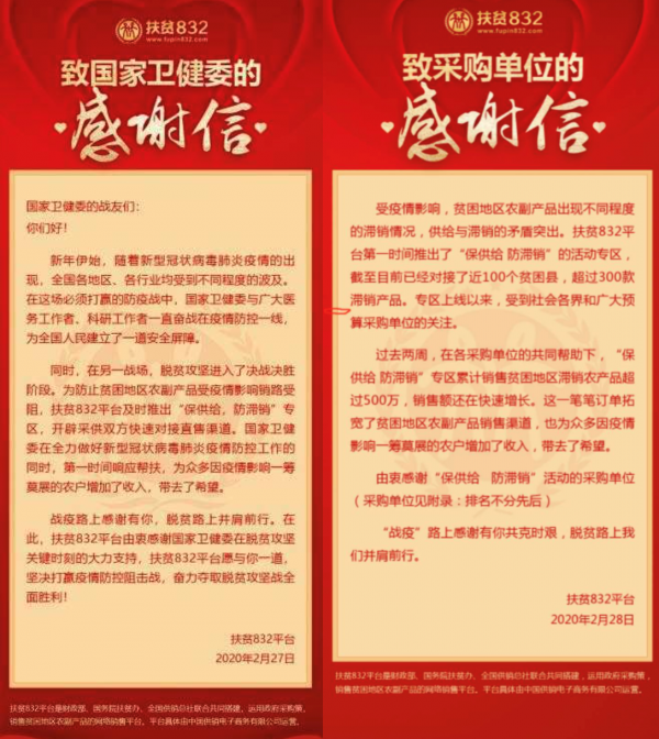 3月1日,扶贫832平台通过咨询平台发布消息“来自湖北大悟县滞销农户的感谢”,农户代表通过短视频,用朴实的语言向血研所的及时订购表达谢意。
