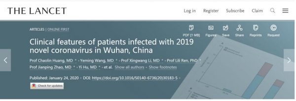 Huang, C., Wang, Y., et al.(2020). Clinical features of patients infected with 2019 novel coronavirus in Wuhan, China. The Lancet.
