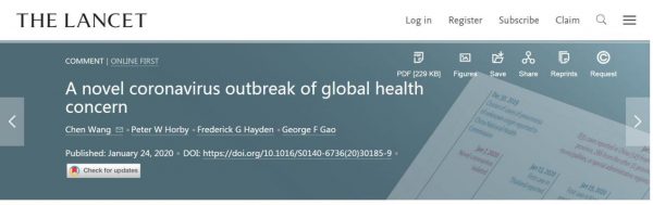 1月24日,《柳叶刀》在线发表了两篇原创研究论文、两篇评论及一篇社论。