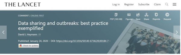 Heymann D. (2020). Data sharing and outbreaks: best practice exemplified. The Lancet.