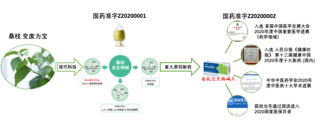 成果二:原创降血糖天然药物“桑枝总生物碱”研究与临床转化