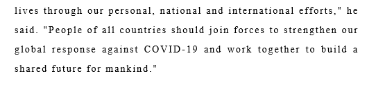这种重视程度当然反映着目前对人们处于抗击疫情的高度关切心态,说明了人们对中国抗疫成功经验的高度期待,也近一步反映的却是在当今世界上保持国际交流的重要性。