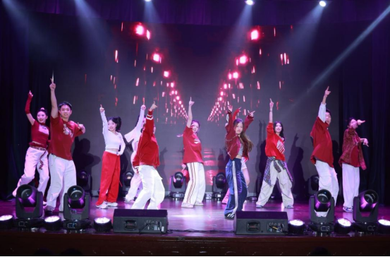 晚会上,悠扬的歌声、动感的舞蹈、高超的演奏交织成美妙的画卷。同学们用精彩的表演致敬时光,寄托青春的希冀。