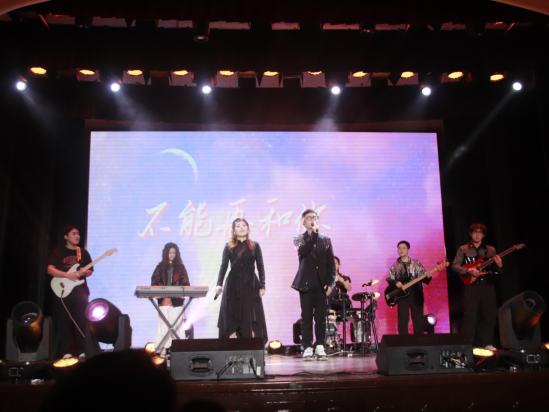 校园十佳歌手钱滢先、邸亦奥带来歌曲《色盲》,光影交错中的歌声诉说了色彩与情感共鸣的故事,周亮同学的独唱《凄美地》也用真挚的演绎带来心灵的震撼。