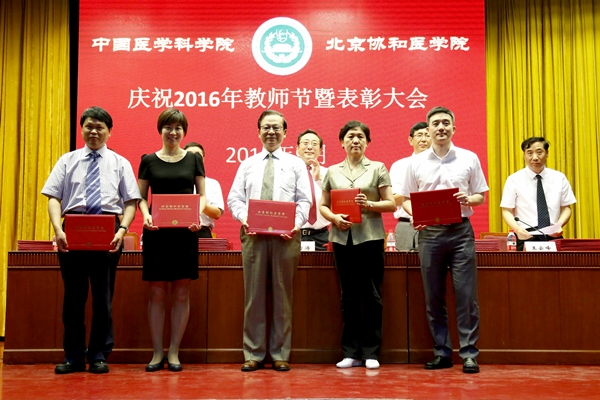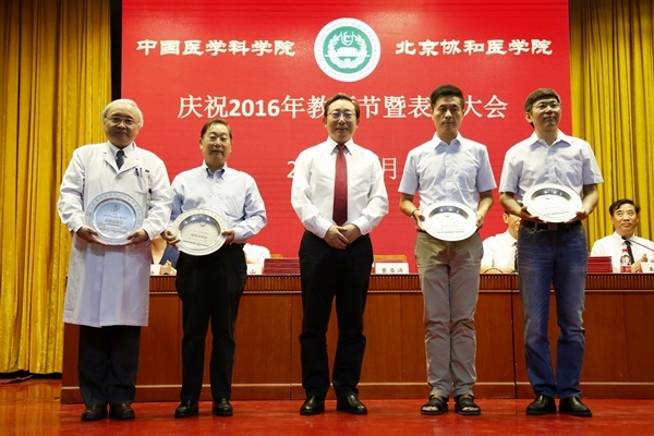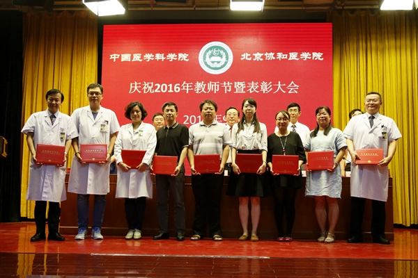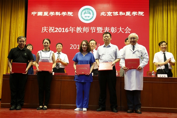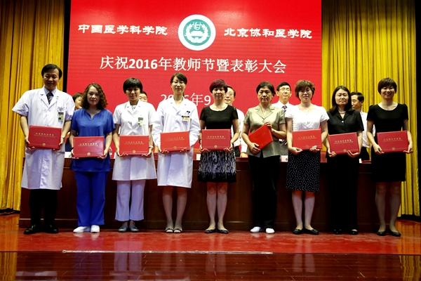 在庆祝表彰大会上,院校领导分别宣读了2016年度北京市教学名师、北京市师德先锋、协和教学名师、校级师德先锋、协和优秀教师、校级优秀教育工作者、校级优秀辅导员、全国医学类高校微课教学比赛、青年教师教学基本功比赛、优秀教育团队、精品教材、优秀教学论文等多个奖项的获奖名单,并为获奖单位和个人颁发奖杯和证书。