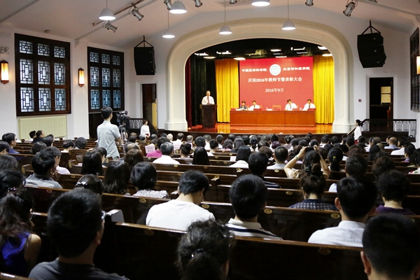 9月9日下午,院校庆祝2016年教师节暨优秀教育工作者表彰大会在东单三条协和礼堂举行。院校领导曹雪涛院校长、李国勤书记、姚龙山副书记、王云峰副书记、张勤副院校长出席大会。会议由李国勤书记主持。