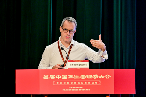国家卫生健康委体制改革司司长杨建立、德国海德堡大学医学院全球卫生研究院院长Till Bärnighausen分别作题为《新时代深化医药卫生体制改革的方向》和《Constructing health systems: 3 epoches》的开篇引言。
