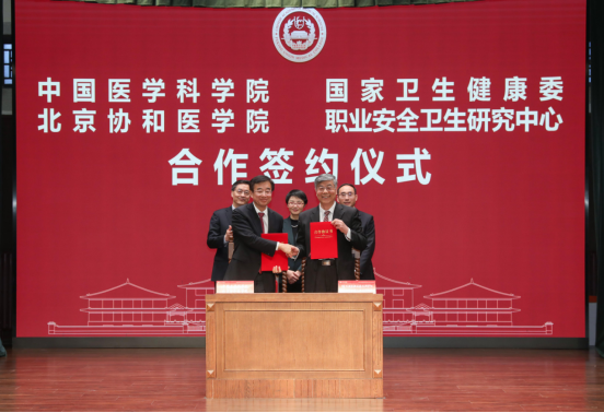 王辰院校长与各单位主要负责同志签署协议,余秋蓉处长代表国家卫生健康委见证签约仪式,邓海华书记与各单位领导班子代表见证签约仪式。