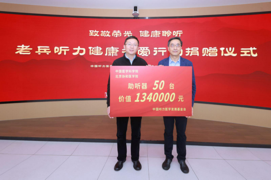 仪式上,中国听力医学发展基金会向院校颁授捐赠牌,院校向基金会回赠锦旗表达谢意。在温馨的助听器发放环节,与会领导共同为符合条件的老兵代表发放助听器,并合影留念。随后,基金会组织专业验配师为院校老年退役军人提供验配调试及使用指导。
