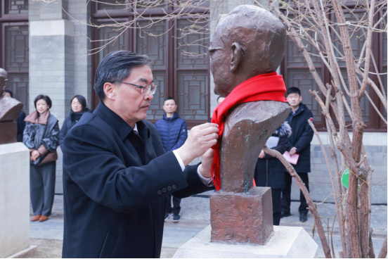 2025年1月23日上午,院校新春致敬崇奉先贤仪式在协和医学院壹号礼堂西庭举行。沿着蜿蜒的仰径,院校领导为九位已故历任校长、院长雕像拂去旧尘,敬系围巾,礼献鲜花。院校长王辰院士代表师生致辞,仪式由院校党委书记邓海华主持。