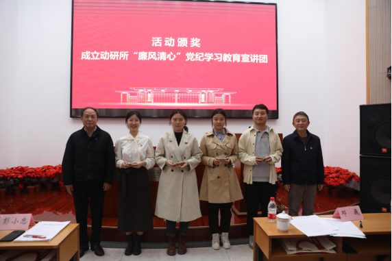 为进一步巩固深化党纪学习教育成果,加强研究所廉洁文化建设,11月5日,动研所举办“家风筑廉 亲情促廉 共话心语”演讲比赛暨动研所“廉风清心”党纪学习教育宣讲团启动会,邀请院校纪委“廉风清心”党纪学习教育宣讲团宣讲。
