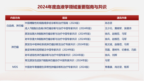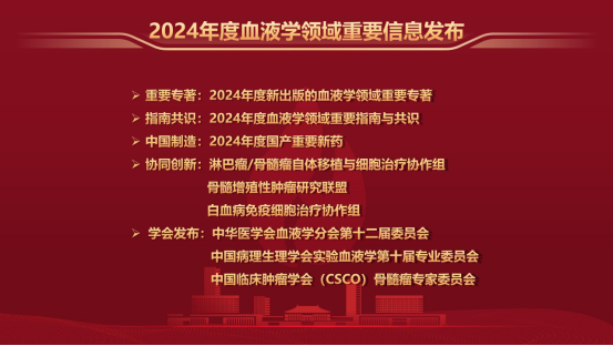 哈尔滨血液病肿瘤研究所所长、中国临床肿瘤学会(CSCO)监事会监事长马军教授从““重要专著””““指南共识””““中国制造””““协同创新””““学会发布””等方面全面回顾了2024年度血液学领域重要信息并进行发布。