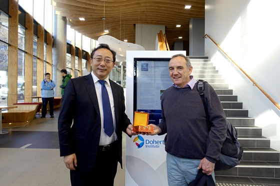 应澳大利亚墨尔本大学邀请,2016年8月25日曹雪涛院校长赴该校医学、牙科与健康科学学部(Faculty of Medicine, Dentistry & Health Sciences)访问,院校科技管理处处长王健伟研究员、病原生物学研究所科技处处长赵振东研究员陪同访问。