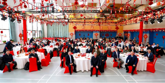 步入主会场,温暖而热烈的气息顷刻环绕,室内灯光流转,映照着每一处精心布置的细节——桌面的吉祥装饰、墙面的新春剪彩、悬挂的灯笼与结彩,流淌着浓郁的年节情味,更彰显着协和大家庭的团圆与温情。