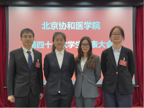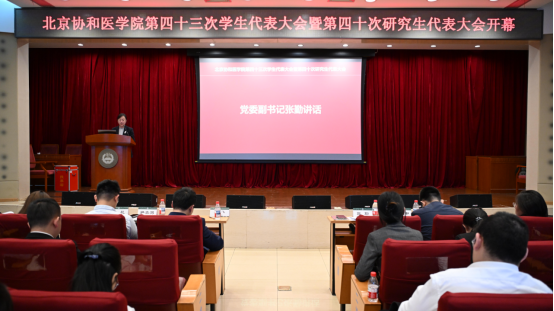 院校党委张勤副书记代表院校党委对大会顺利召开表示祝贺,她充分肯定了校学生会、研究生会过去一年的工作成果,学生会与研究生会作为连接学校与学生的桥梁,始终坚持与时代共呼吸,与祖国共奋进,与学校共成长,充分展现了协和学子昂扬奋进、锐意进取的精神风貌。她强调,当前和今后一段时期全校要将学习贯彻党的二十届四中全会精神作为重要任务,并转化为院校发展实效,同时,她向协和学子提出三点希望:一是坚守初心,将“小我”融入“大我”,服务祖国医药卫生事业;二是“自找苦吃”,深耕医学领域,锤炼学术与实践本领;三是践行服务宗旨,深化学生组织改革,切实解决同学急难愁盼,助力学校发展。