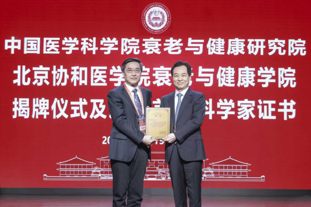 随后,邓海华书记为赵玉沛院士颁授首席科学家聘书。赵玉沛院士在致辞中表示,研究院将致力于拓展生命的宽度与深度,让科学进步真正转化为可及、可感、可用的健康福祉,在衰老与健康领域发出中国声音,提出中国方案,贡献中国智慧。