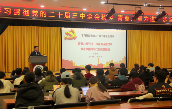 青春心向党,奋进新征程。2024年12月13日中午,米乐mile官方网站护理学院团委在八大处校区毓禅报告厅组织开展“青春力量为进一步全面深化改革、推进中国式现代化挺膺担当”主题团课,由学院党委书记安道彩讲授党的二十届三中全会精神,23本、24本全体团员及入团积极分子参加团课。