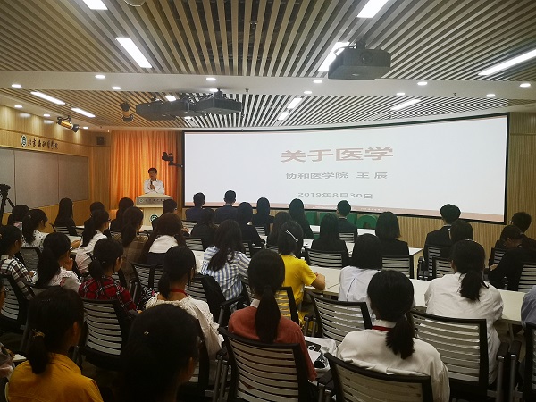 开学典礼后,王辰院校长为“4+4”临床医学试点班和首届卓越护理人才贯通培养改革试验班的同学们讲授了开学第一课《关于医学》。