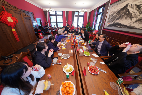 王辰院校长、邓海华书记在欢声笑语间祝愿全体同学“巳巳”如意、前程“巳”锦、学有所成、平安康健,并寄语大家在新的一年脚踏实地学习积累,在护佑生命的伟大事业上潜心躬耕,传承发扬协和优秀文化,在新的一年以更加健康的体魄,更加饱满的状态,更加昂扬的斗志,不负时代重托、勇敢追梦前行,为院校建设成为国家医学科技创新体系核心基地贡献新的力量。