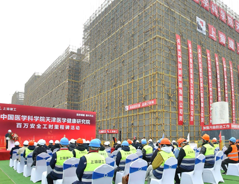 常子奎书记在致辞中表示,健研院项目百万安全工时的建设成绩离不开院校和天津市委、市政府的正确领导,市科技局、静海区委区政府等单位和部门给予的大力支持,以及各参建单位的工匠精神。他指出,这不仅是健研院项目建设发展历程中重要的里程碑,更将是乘势而上、再创辉煌的全新起点。健研院将继续坚持高起点、高标准、高品质、高效率推进项目后续建设,着力引进优质创新资源,提升医学科研创新策源能力,把健研院项目打造成为院市合作推动医学健康领域京津冀协同发展的标志性工程。