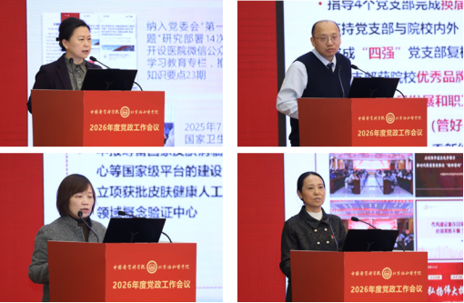 会议指出,2025年,院校党委在国家卫生健康委党组坚强领导下,始终坚持以习近平新时代中国特色社会主义思想为指导,深入学习贯彻党的二十大及二十届历次全会精神,加强党的全面领导,持续推动党建与业务工作同频共振、深度融合,以高质量党建引领和保障高质量发展,为各项事业进步提供坚强政治保证。一是坚决拥护“两个确立”、践行“两个维护”,推进政治能力再提升。严格落实“第一议题”制度,以科学决策引领方向,以巡察整改深化治理,筑牢安全稳定防线,不断夯实事业发展根基。二是扛牢政治责任,抓实学习教育,推进作风建设新突破。持续完善教育教学体系,高位高效推进中央八项规定精神学习教育走深走实。三是深化创新理论,夯实思想根基,推进信仰之基更牢固。扎实推进师德师风建设,牢牢守住意识形态主阵地,系统实施文化建设年系列活动,凝炼推广核心文化要素,有力彰显院校文化凝聚力与育人功能。四是筑牢堡垒先锋,强化人才支撑,推进干部队伍焕新颜。科学统筹干部选拔任用,持续深化干部职工教育培训,做实做细干部全方位管理与经常性监督,推动干部队伍整体能力素质有效提升。五是全面从严治党,深化群团共建,推进政治生态更清朗。坚持风腐同查同治,压实落细管党治党责任,凝聚党外人士思想政治共识,充分发挥老同志专业经验优势,汇聚团结奋进力量。六是融合党建业务,聚力主责主业,推进发展质效双跃升。提速推进核心基地建设,持续深化医学教育改革,坚持统筹兼顾,各项重点任务稳步推进,为院校事业发展注入强劲动力。