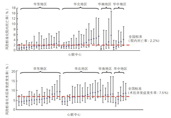 我国各地区冠状动脉旁路移植术患者院内死亡率和术后并发症发生率情况