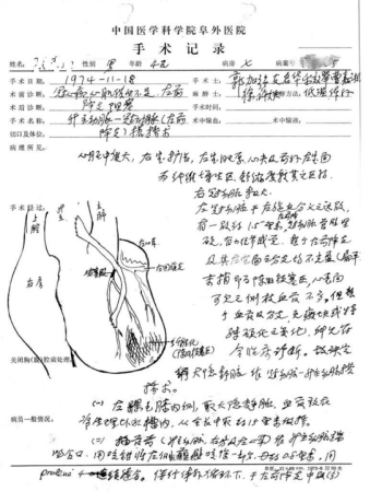 1974 年11 月18日,我国首例冠状动脉旁路移植术的手术记录