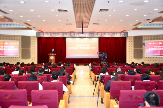 2025年10月19日,院校年轻干部长训班第三期结业暨第四期开班仪式在吴宪大楼八楼报告厅举行。国家卫生健康委直属机关团委书记石宁辉,院校党委书记、副院校长邓海华,院校长、党委副书记吉训明,院校党委副书记张勤出席活动。院校机关相关职能部门负责人,以及第三期、第四期年轻干部长训班学员共计百余人参加。仪式由院校纪委书记、党委常委王峥主持。