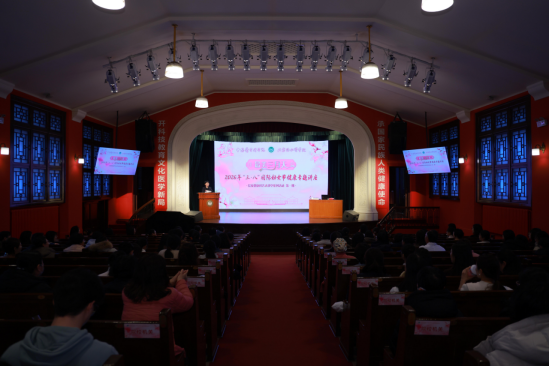 2026年3月6日下午,由院校工会主办、北京协和医院工会协办的“最美三月天”——2026年院校庆祝“三八”国际妇女节健康专题讲座在东单三条壹号礼堂举办。本次活动作为院校工会职工科普大讲堂系列讲座的第一期,邀请协和医院皮肤科主任医师刘洁以“科学护肤,守护皮肤健康”为题,为院校女职工讲授健康护肤知识。