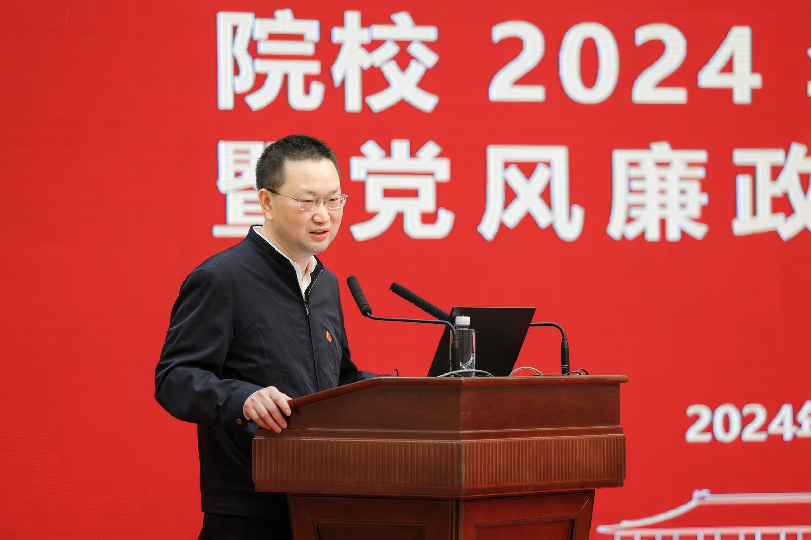 会上,院校长王辰传达二十届中央纪委三次全会重要精神,院校党委书记、副院校长姚建红代表院校党委作党建工作报告,院校纪委书记王峥代表院校纪委作院校党风廉政建设工作报告。